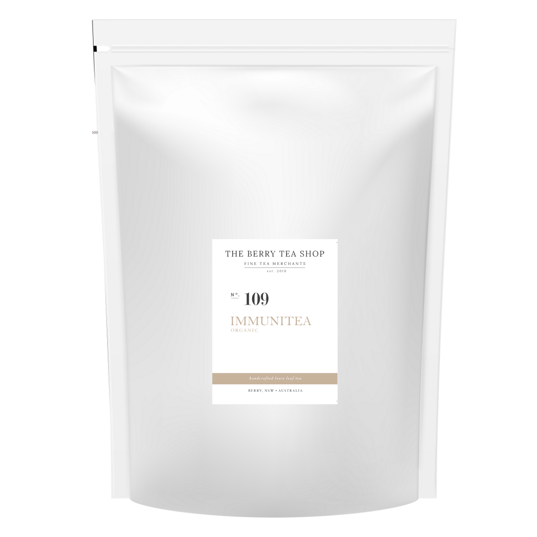 Strengthen your natural defences with Immunitea – a healing blend of immune-boosting organic herbs. Crafted with echinacea, lemongrass, ginger, lemon myrtle, peppermint, fennel, and calendula, this uplifting infusion warms the heart, supports wellness, and helps keep you balanced during cold and flu season. Enjoy it daily for vibrant wellbeing.