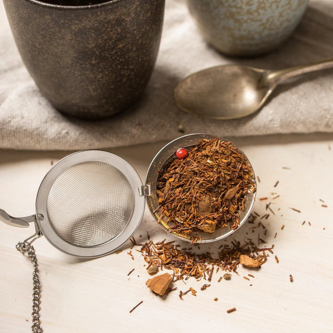 Whether you're seeking a soothing evening cup, a pregnancy-safe tea, or a caffeine-free alternative to black tea, our rooibos blends offer something for every tea lover. From our classic Organic Red Rooibos to the warming Spice Temple and chai-infused variations, every blend is rich in antioxidants and low in tannins, making it gentle on digestion and supportive of heart and bone health.