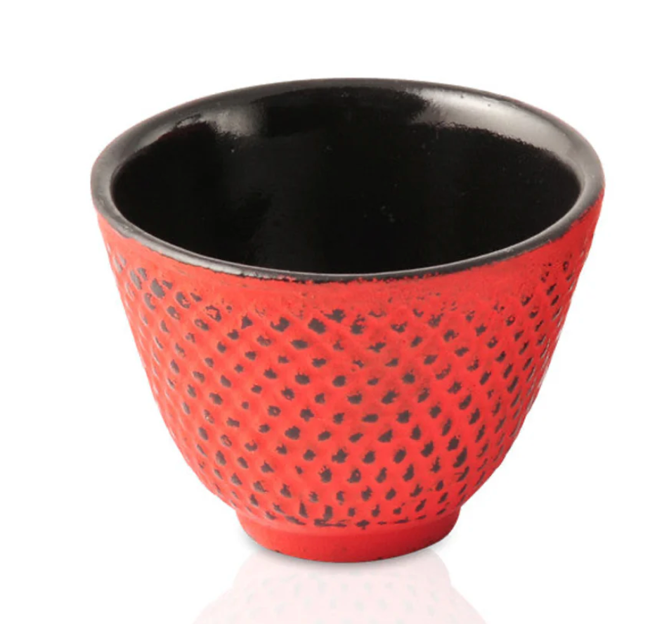 A beautifully hand-crafted cast iron cup in red, coated with enamel on the inside to prevent rusting. The perfect companion to the Fuyu Red and Moto Red Iron Teapots