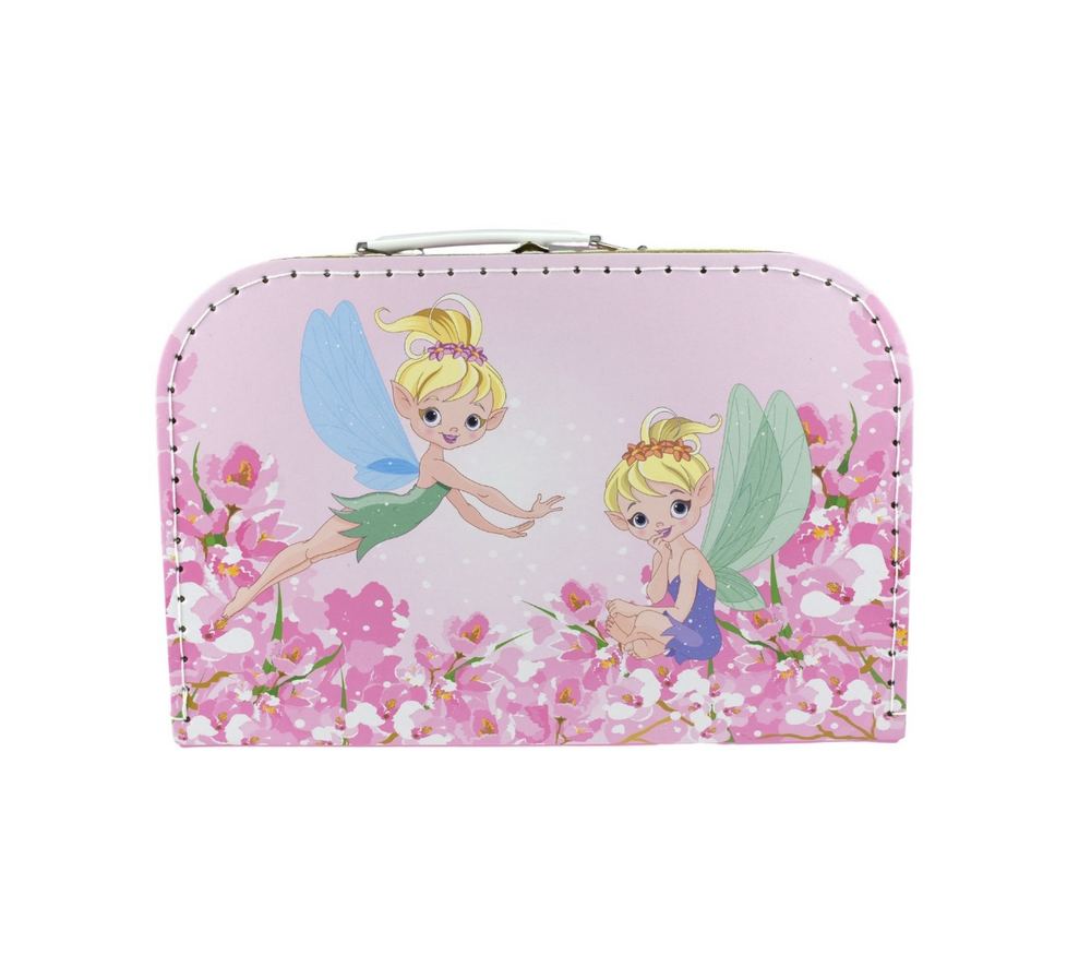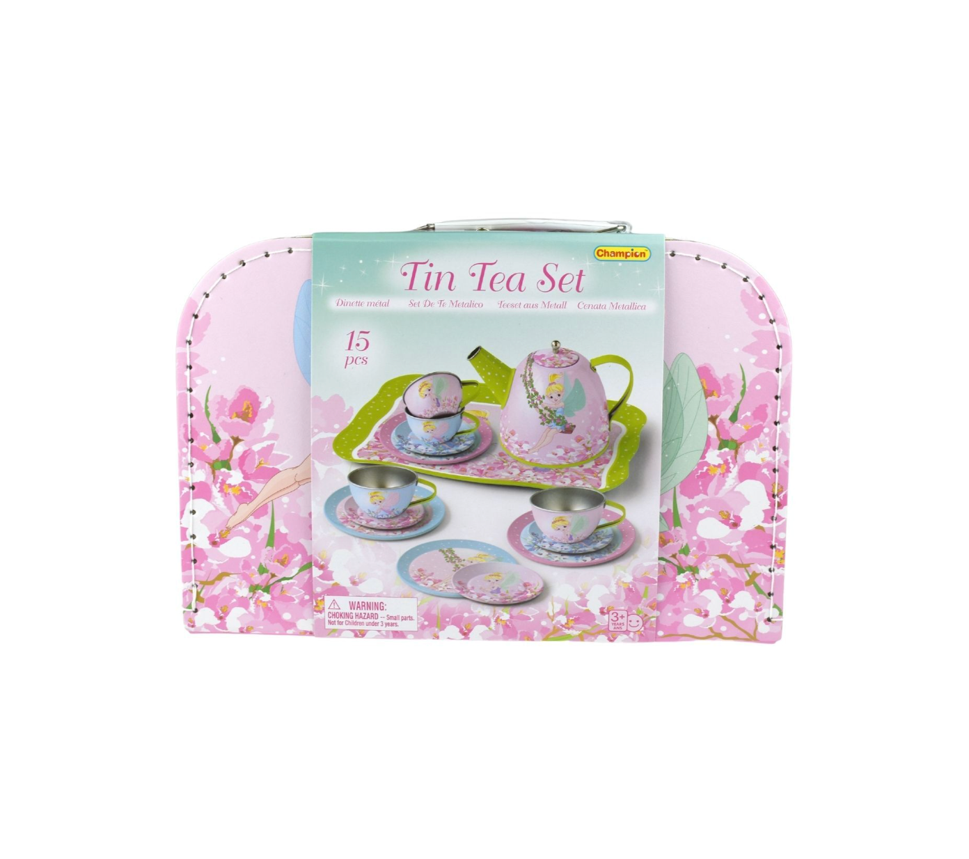Step into a whimsical wonderland with our enchanting 15-piece Flower Fairy Tin Tea Set in its delightful suitcase. This magical set transports your child to a world of imagination and beauty, adorned with stunning illustrations of a fairy amidst a vibrant flower garden—a scene that sparks wonder and invites playful tea-time adventures.