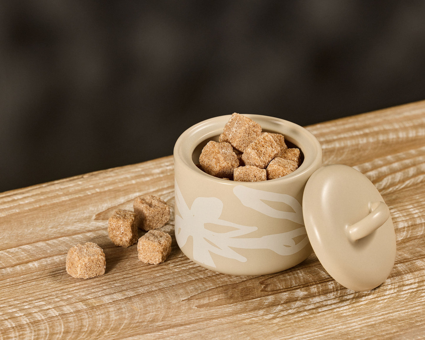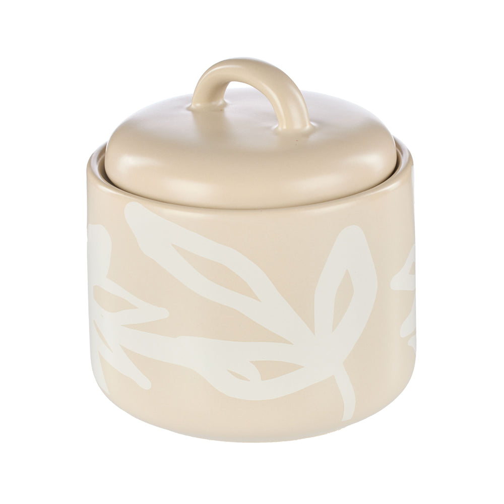The Leaf & Bean Freya Sugar Pot will make your tea or coffee time ritual extra special. The abstract white floral print on a soothing oat backdrop lends delightful colour to your benchtop.